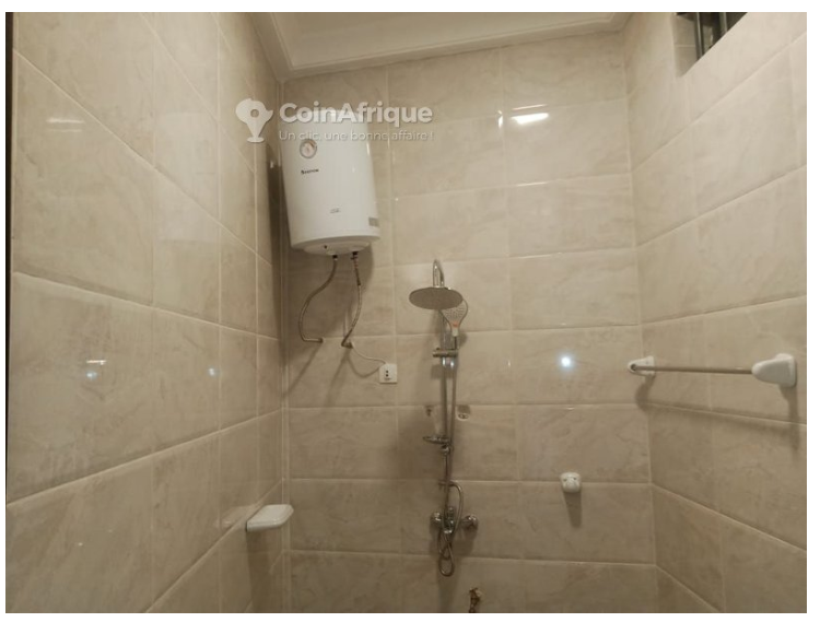 Disponible à aibatin 10 mètre des pavés appartement nouvelle construction au deuxième étage de deux chambres salon sanitaire staffé de haut standing chaque chambre avec douche et une douche visiteur baies vitrées climatiseur dans toutes les chambres et chauffe eau bien vaste caméra de surveillance gardien nuit et jour